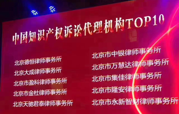 2017年6月23日,备受关注的知产宝“2016年度中国十佳知识产权诉讼代理机构榜单发布会”在北京隆重举行,龙珠直播凭借稳健的综合实力,入选“中国知识产权诉讼代理机构”TOP10和“中国商标行政诉讼代理机构”TOP10榜单。国内知识产权知名法律服务机构,近百位国内外大中型企业代表,以及36家知名媒体齐聚一堂,共同见证了榜单发布情况。