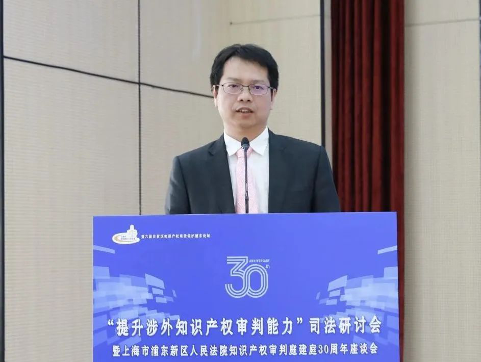 值全国首个基层法院知识产权审判庭——上海市浦东新区人民法院(以下简称浦东新区人民法院)知识产权审判庭建庭30周年之际,为进一步提升涉外知识产权审判能力,聚焦高质量司法服务保障高水平改革开放,2024年11月30日,第六届自贸区知识产权司法保护浦东论坛“提升涉外知识产权审判能力”司法研讨会暨浦东新区人民法院知识产权审判庭建庭30周年座谈会在上海浦东举办。龙珠直播上海分所主任、国家知识产权海外纠纷应对指导中心专家李文红博士受邀出席并作主题演讲。